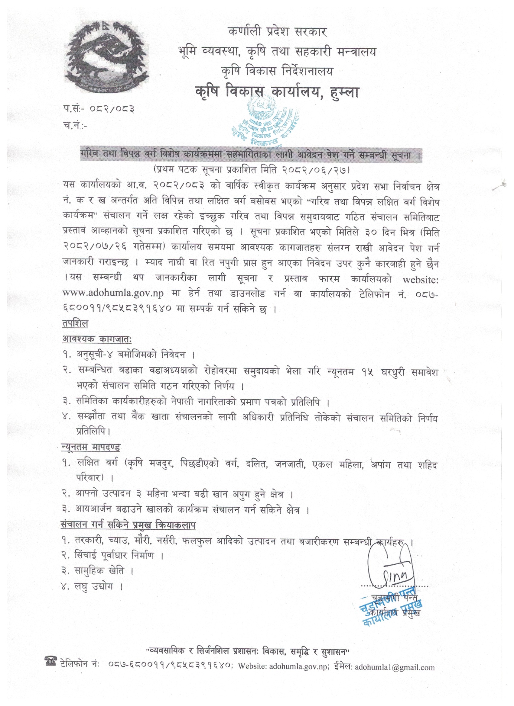 मागमा आधारित साना सिचाई योजना निर्माण तथा मर्मत सम्भार कार्यक्रममा निवेदन आव्हान सम्बन्धि सूचना |